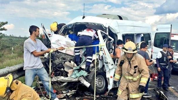 Un vehículo de pasajeros que presuntamente transportaba a miembros del Opus Dei sufrió ayer un accidente que dejó 11 muertos en la carretera libre San Juan de los Lagos-Jalostotitlán. Foto: Especial