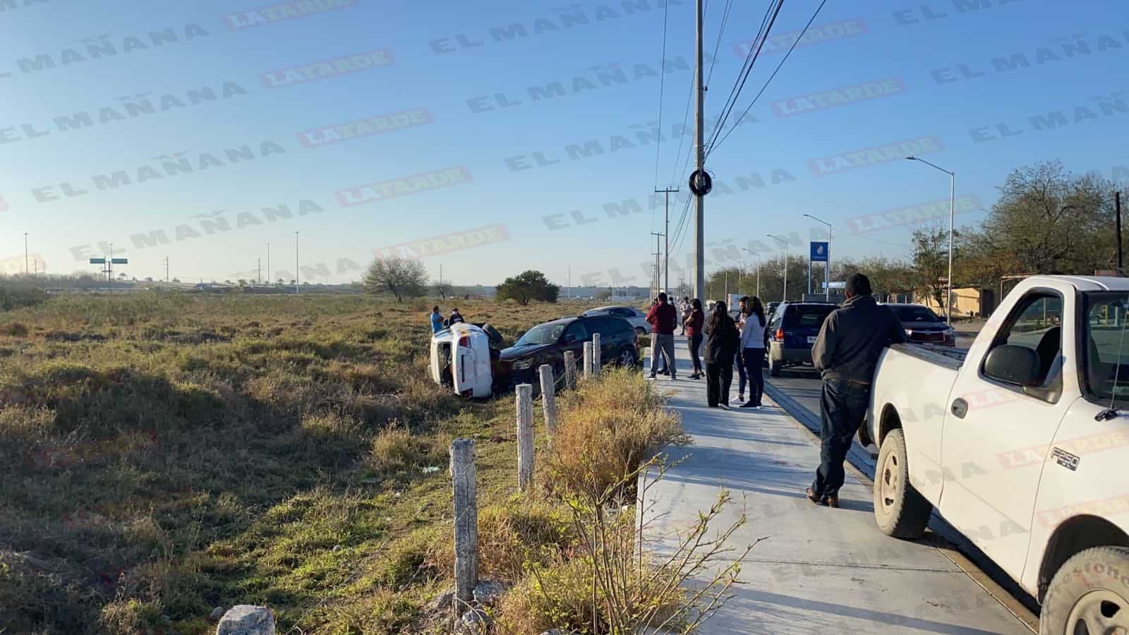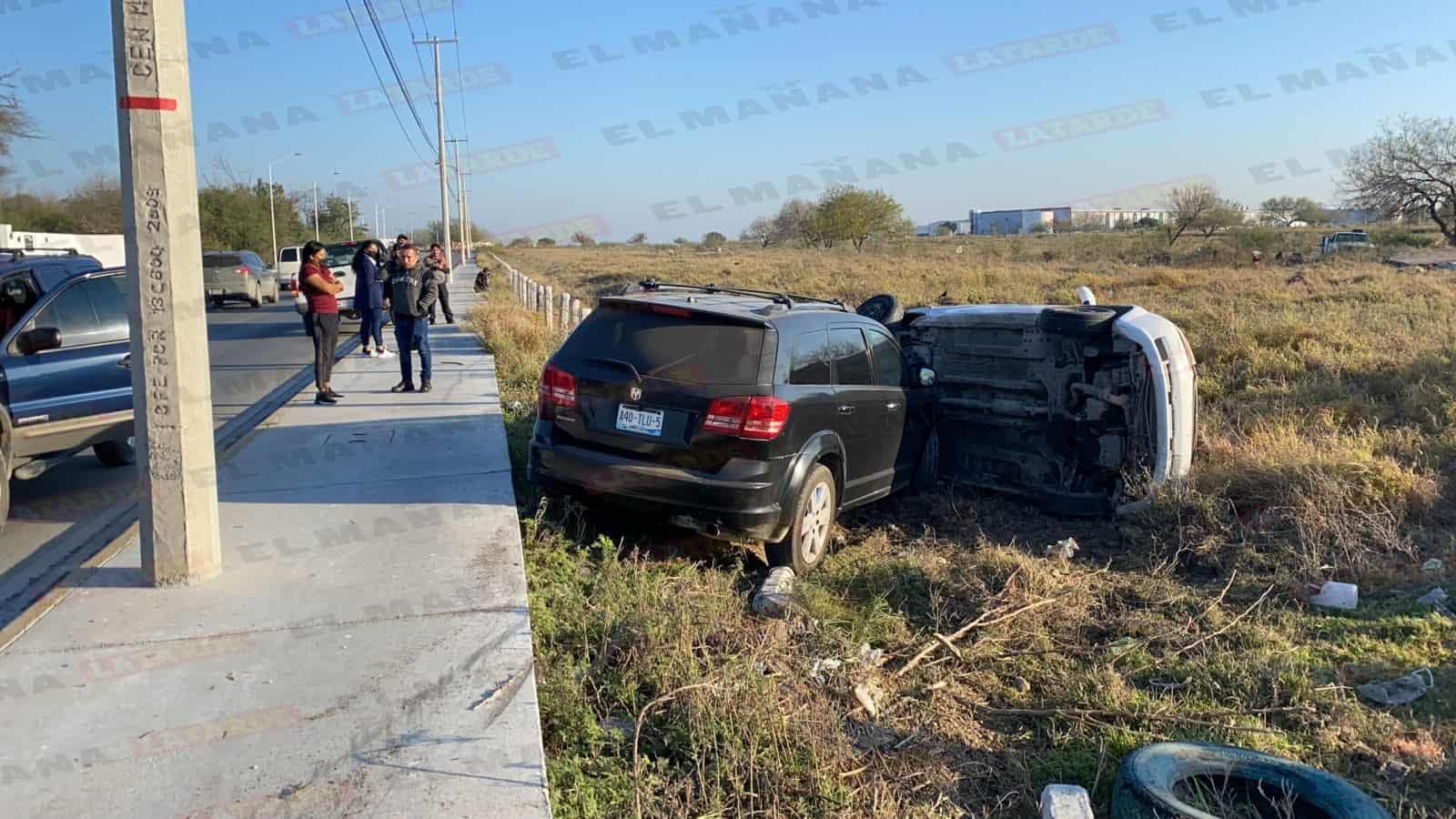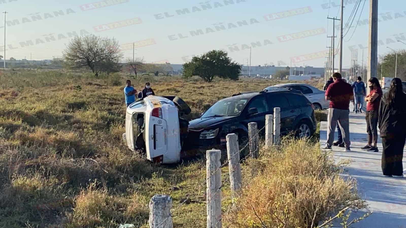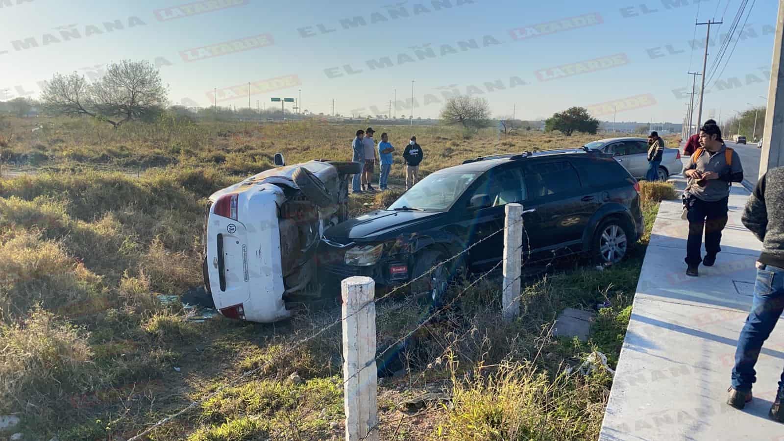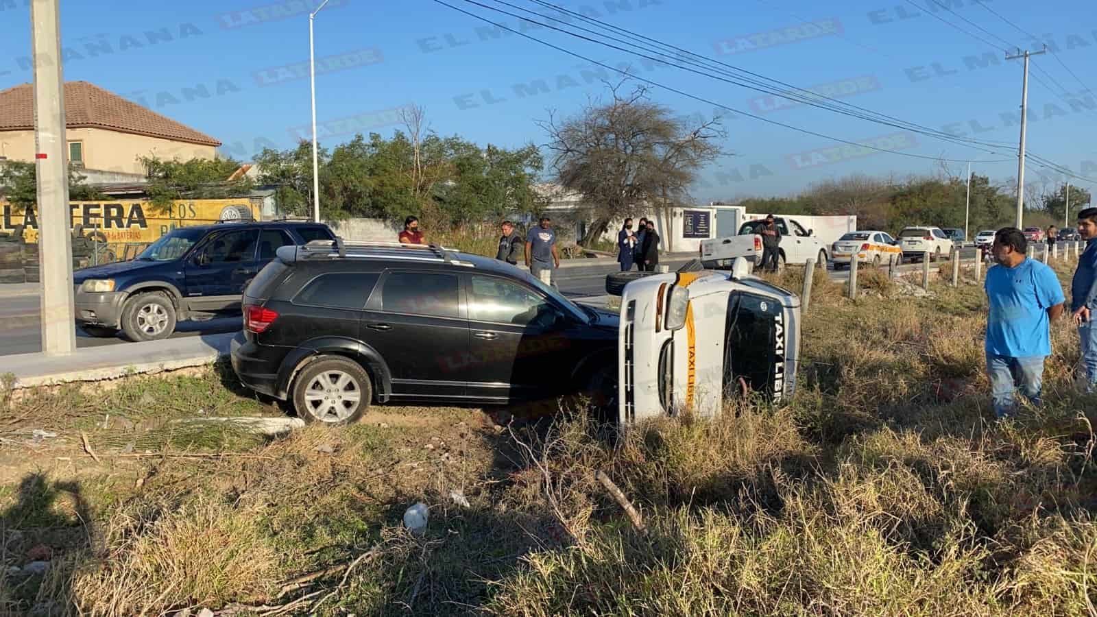 En el accidente participaron un taxi Chevrolet Aveo que terminó volcado y una camioneta Dodge, por lo que ambas unidades quedaron proyectadas en un predio baldío.