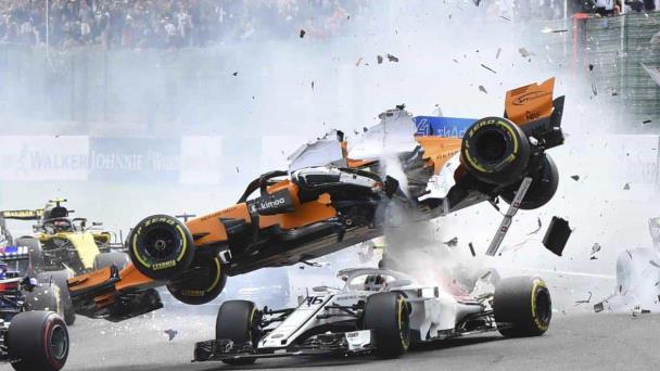 Tras la salida en el circuito de Spa-Francorchamps, Hülkenberg frenó demasiado tarde en la primera curva y golpeó fuertemente por detrás al monoplaza de Alonso, que se elevó y cayó, aunque el piloto asturiano no sufrió daños aparentes y salió de su vehículo sin problemas.