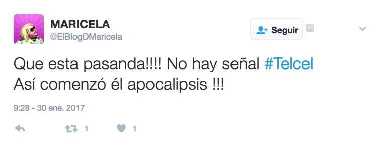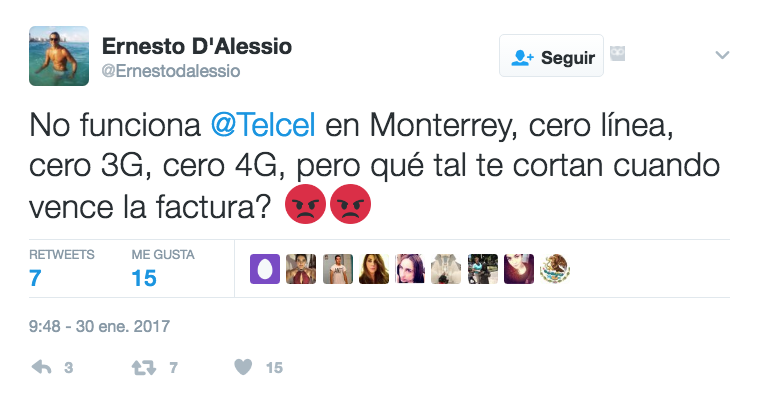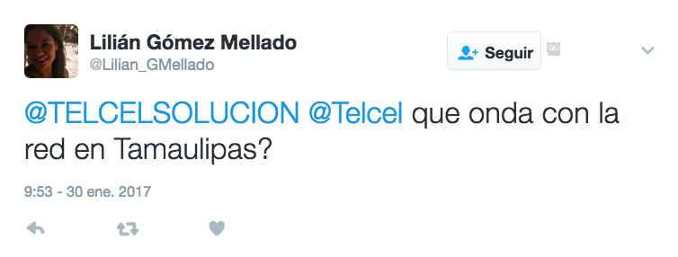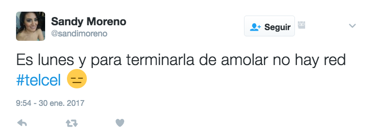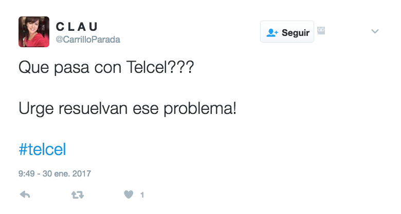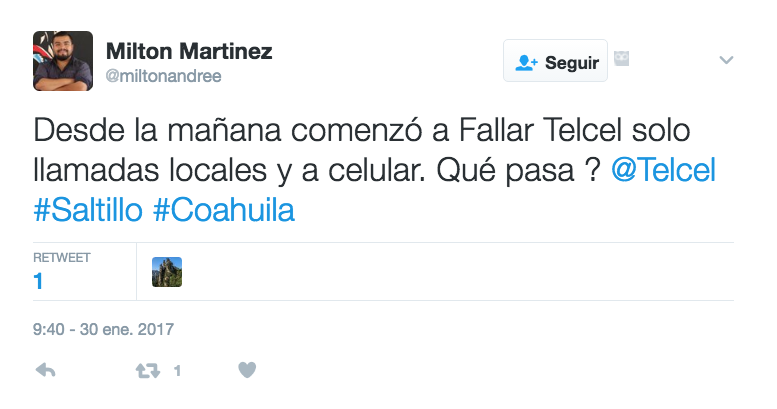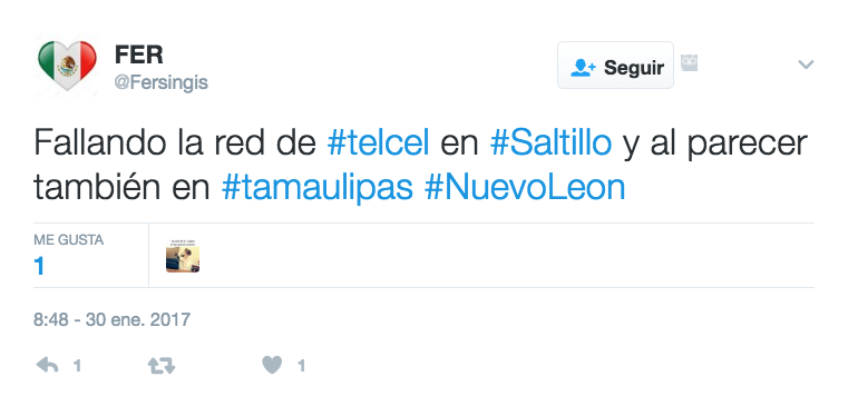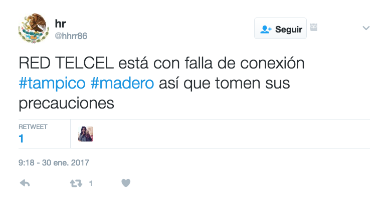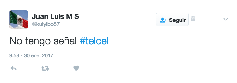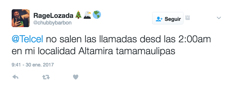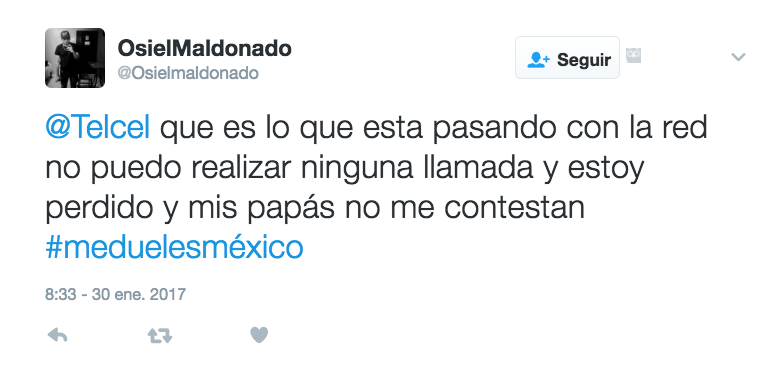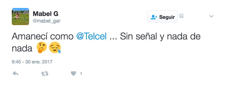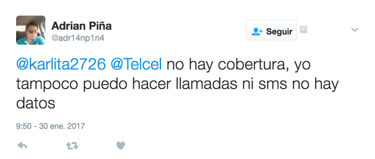 en Facebook y Twitter, por ejemplo: @adr14np1n4 que hace mención @Telcel no hay cobertura, yo tampoco puedo hacer llamadas ni sms no hay datos.