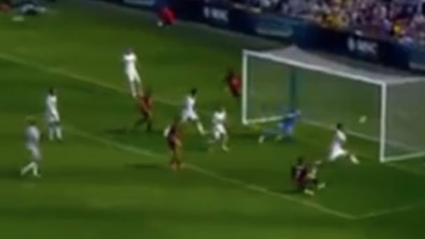 En un partido amistoso contra el Leeds United de Inglaterra, el delantero mexicano anotó el primer gol del partido para darle la ventaja parcial a los rossoneros.