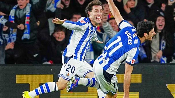 Mikel Oyarzabal adelantó a los locales con una volea junto al poste lejano a los 32 minutos. Barcelona igualó con un cabezazo de Marcus Rashford a los 70, pero un minuto después Gonçalo Guedes puso a la Real Sociedad nuevamente adelante con un disparo desde dentro del área.