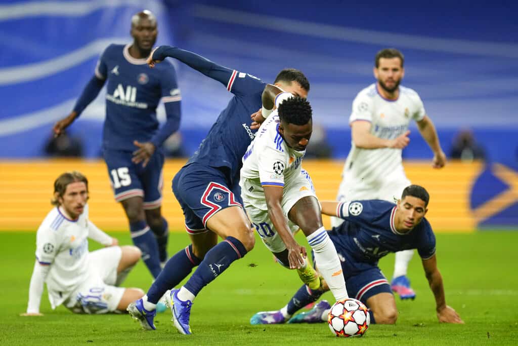 La mística del estadio blanco devoró al equipo francés, que comenzó muy fuerte y durante un buen rato tuvo a su rival contra las cuerdas, apoyado en las cabalgadas y la pegada de Mbappé. El francés anotó un gran tanto y vio cómo se le anulaban otros dos. En cambio, los tres de Karim Benzema subieron al marcador.