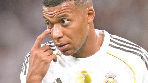 El francés Kylian Mbappé, del Real Madrid, hace un gesto durante el partido de fútbol de la LaLiga española entre el Real Madrid y el Mallorca en Madrid, el sábado 30 de agosto de 2025.