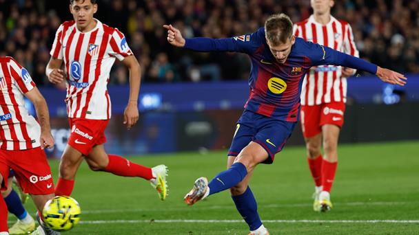 Olmo se lesionó el hombro izquierdo en una caída después de definir con un zurdazo a los 65 minutos para el segundo gol del Barça en el estadio Camp Nou. El Atlético había pegado primero con la diana de Álex Baena a los 19 minutos y Raphinha igualó para los locales a los 26.