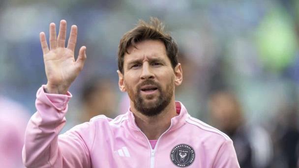El capitán del Inter Miami Lionel Messi saluda a los fanáticos antes de la final de la Leagues Cup final contra Seattle Sounders.