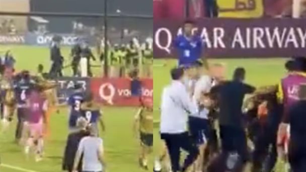 En el video que se viralizó en redes sociales, se puede observar como un futbolista colombiano sale en persecución de un francés, ocasionando que se movilizaron el resto de los futbolistas galos, así como de los cafetaleros. Curiosamente, mientras ellos peleaban, México estaba enfrentando a Argentina en el campo de al lado, donde estuvieron cerca de llegar los franceses y colombianos.