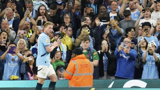 Después de diez años cargados de trofeos, el internacional belga fue recibido con una enorme pancarta que lo declaraba "Rey Kev". Recibió una ovación de pie en la segunda mitad, cuando fue sustituido.