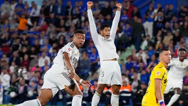 El Real Madrid aprovechó una tarjeta roja para un jugador del Getafe que estuvo menos de un minuto en el campo para concretar el domingo la victoria 1-0 gracias al gol de Kylian Mbappé a los 80 minutos.