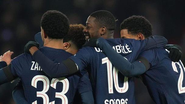 Los delanteros estrella Désiré Doué y Ousmane Dembélé anotaron para el PSG.