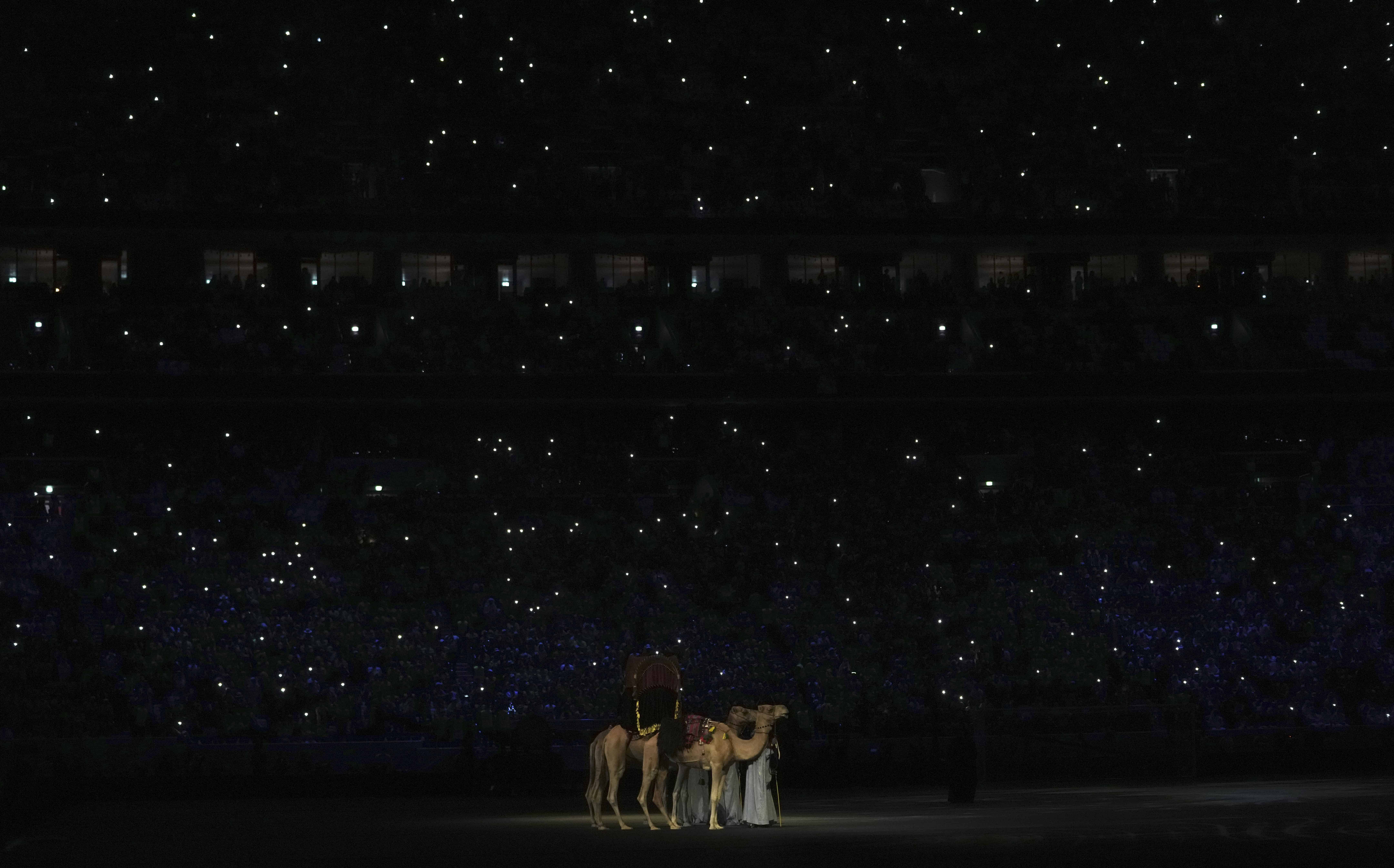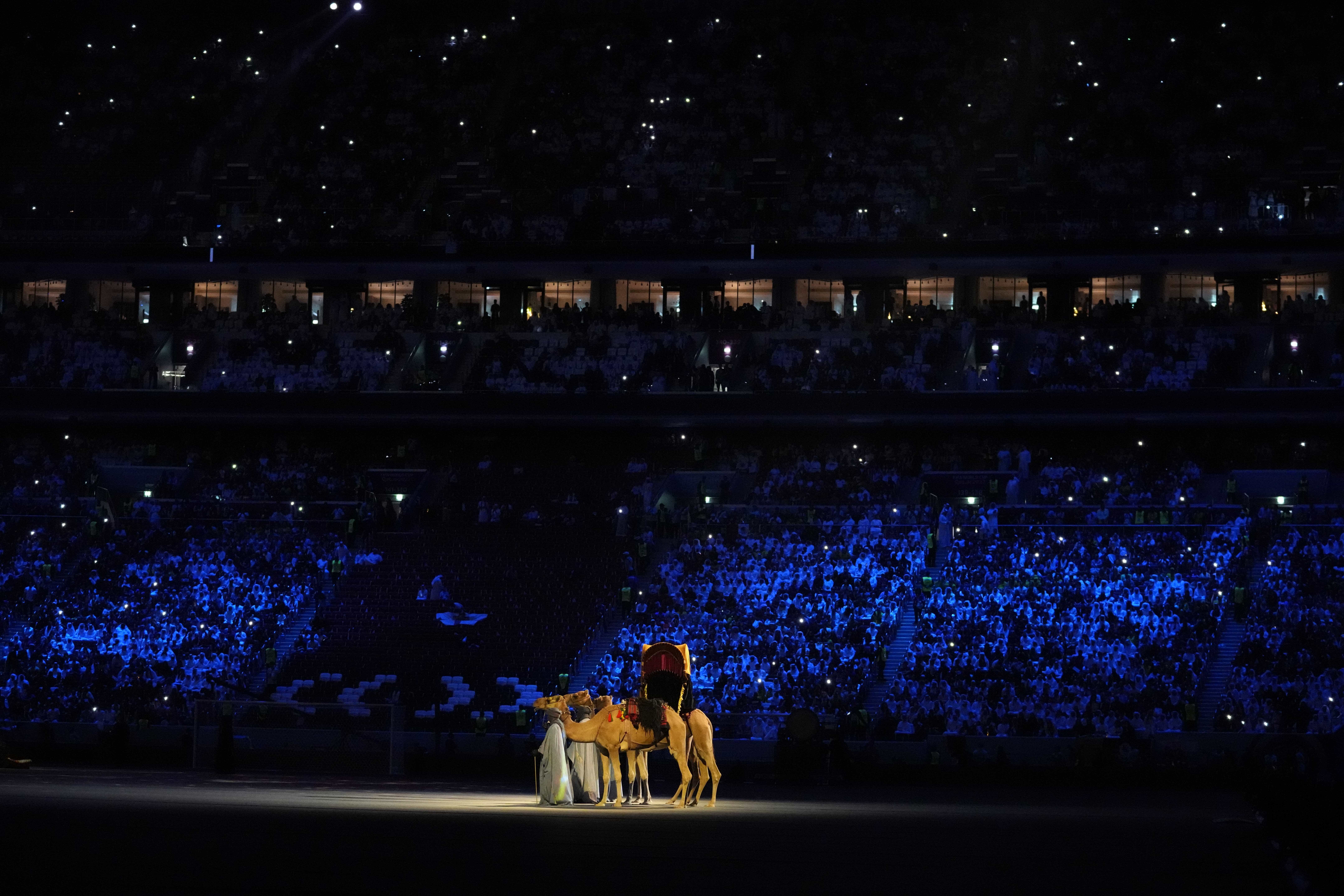 Camellos y caballos árabes se alinearon en la entrada del estadio, un lugar inspirado en una tienda beduina ubicada en los alrededores bastante aislados de la ciudad rural de Al Khor, al norte de Doha.