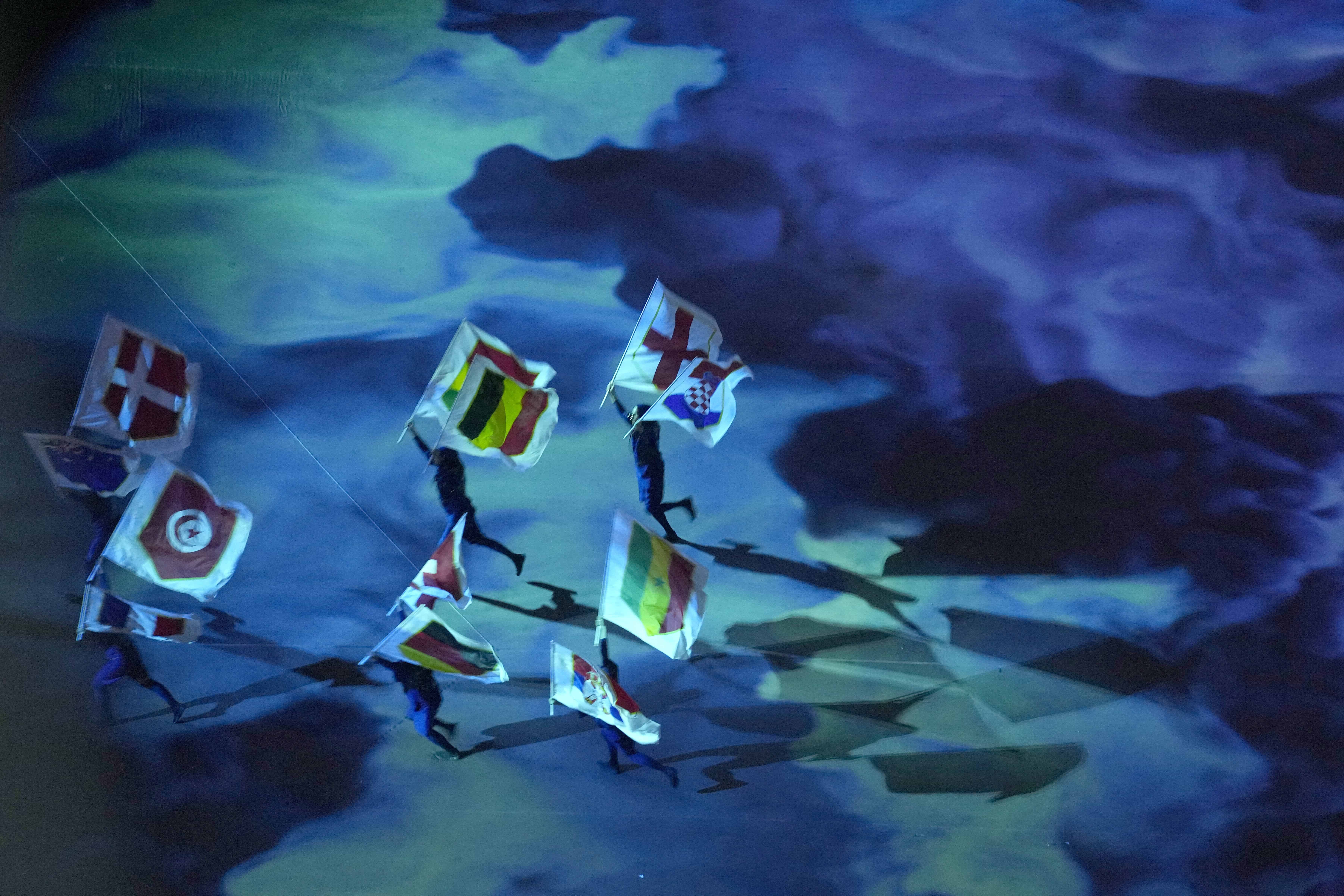 Y la ceremonia de apertura de siete actos estuvo a la altura de su facturación, destacando cuando Freeman resultó una mano enguantada de amarillo a un embajador de la Copa Mundial de la FIFA que sufría de un raro trastorno de la columna vertebral en una imagen que representaba la inclusión en un país que enfrenta críticas internacionales por su historial de derechos humanos.