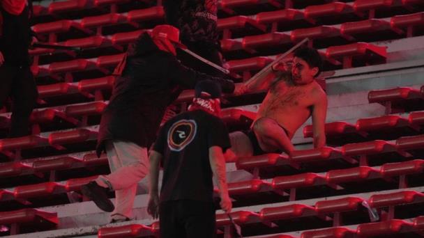 Dos hinchas que se lanzaron de la tribuna al vacío para escapar del ataque. Otro acabó desvanecido por el golpe de un palo en la cabeza. Varios desnudos y ensangrentados suplicando clemencia a los agresores.