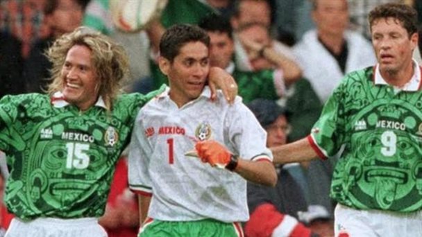 Se trata de las camisetas utilizadas en la Copa del Mundo de Francia 1998, una edición muy especial que, entre los detalles más importantes, presume en el pecho la Piedra del Sol y fue realizada por la marca ABA Sport.