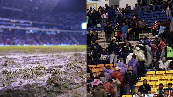 Condiciones climáticas que se dan después de que, ayer por la noche, se suspendiera el duelo de la Liga MX por la fuerte tormenta que afectó la cancha del Estadio Cuauhtémoc, atrasando dos horas el compromiso para, finalmente, reprogramarlo.