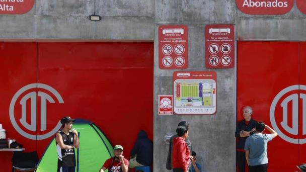 Alrededor de 50 personas, algunas de ellas que acamparon desde el domingo, estaban formadas afuera del estadio Nemesio Díez.