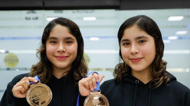 Con miradas firmes y mostrando sus medallas en cada oportunidad, la dupla mexicana de 14 años —que vivió su primera experiencia en una justa mundial— agradeció el apoyo de la afición en el país, que se mantuvo atenta a su participación.