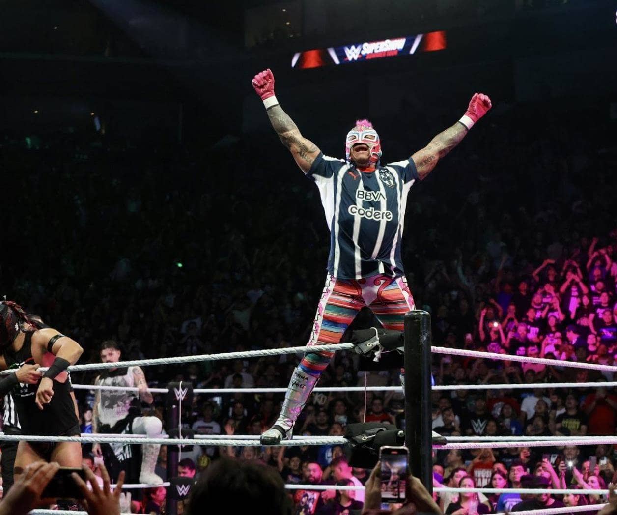 Los mexicanos Mysterio y Dragón Lee vencieron a Dominik Mysterio y Carlito ante 16 mil aficionados en la Arena Monterrey, en el SuperShow de WWE.