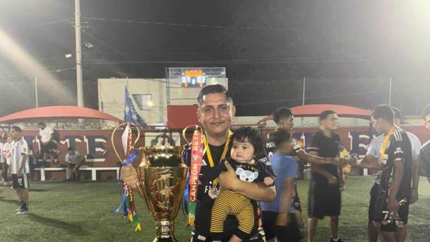 El pequeño Elías Ruíz Torres aún no patea el balón pero ya tiene un equipo. Su padre armó un trabuco para jugar en La Champions Reynosa y decidió ponerle Elías FC.