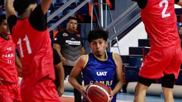 En actividad del básquetbol varonil los Bravos de la Unidad Académica Reynosa Rodhe lograron el primer paso en los Juegos Interfacultades UAT 2025 Zona Norte