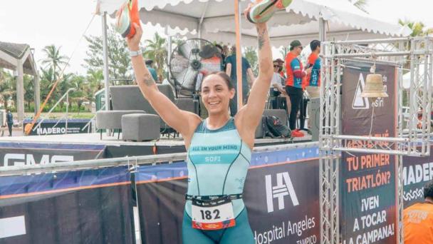 La atleta reynosense logró el primer lugar en su categoría (30-34), en la modalidad de Sprint con un tiempo de 1 hora 8 minutos y 53 segundos.