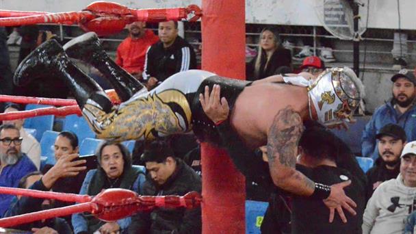 Turok Jr. volando entre las cuerdas para castigar al Único Jr.