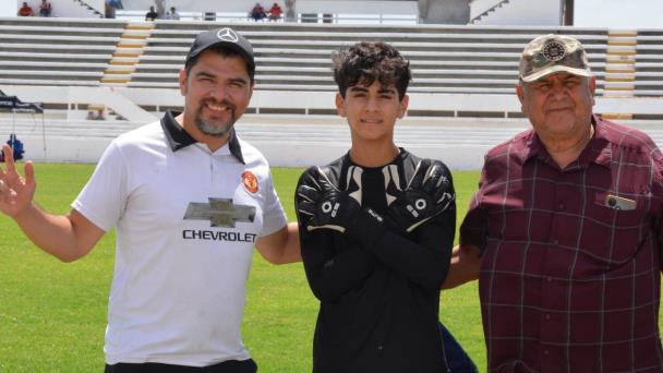 Franco Torres viajó de Monterrey a Reynosa para participar en las visorias del América. El sueño de ser futbolista profesional es algo que comparte con su abuelo, don Paco y con Francisco, su padre, quienes lo acompañan en esta y en todas las travesías.