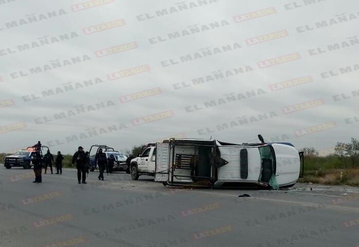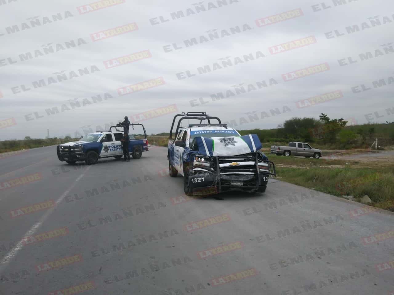 También en los recorridos de vigilancia autoridades estatales participaron en un accidente vial en el Viaducto Reynosa, donde una patrulla terminó volcada al ser chocada por otra unidad oficial.