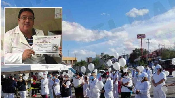 Personal médico, enfermería, auxiliar y demás de la Unidad de Medicina Familiar Número 33 del IMSS en Reynosa, efectuaron un nuevo tributo póstumo para despedir a su compañero el doctor Rito Zambrano Navarrete, fallecido, tras complicaciones pulmonares y haber sido contagiado de COVID-19.