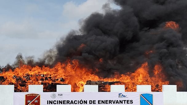 También quemaron 46.310 kilogramos de cocaína, 1,993 kilogramos de fentanilo, 15.132 kilogramos de heroína, 8.270 kilogramos de metanfetaminas.