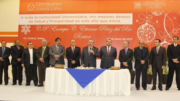 “En el 2014 se sentaron bases fuertes e irreversibles para que la Universidad Autónoma de Tamaulipas (UAT) despegue hacia la excelencia”, expresó el Rector Enrique Etienne Pérez del Río, al presidir el tradicional saludo de año nuevo de la comunidad universitaria en esta capital.