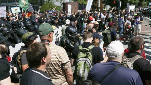 La de la ciudad estadunidense de Portland declaro como “disturbio civil” un enfrentamiento suscitado este sábado en el centro de la ciudad, entre manifestantes de un grupo de ultraderecha y manifestantes antifascistas autodenominados como “antifa”.
