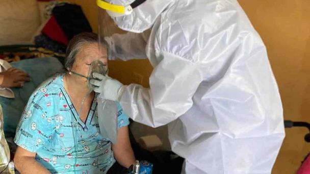 Igualmente en otras maniobras de apoyo como aplicación de oxígeno a pacientes, curaciones a domicilio o espacios cerrados, se echa mano de estos atuendos que evitan que el virus quede adherido al uniforme que tienen que portar los elementos de la corporación por turnos de 24 horas.