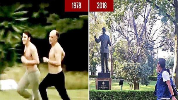 En la entrada está el escudo mexicano, donde en agosto pasado se retrató el tatuador Jon Boy, conocido por cobrar mil dólares por hora. Había ido a tatuar a las hijastras del Presidente Peña. Ahí mismo inicia una rampa ovalada, hoy flanqueada por las esculturas de 14 ex Mandatarios, pero que mandó construir Gustavo Díaz Ordaz como pista para que sus hijos condujeran sus go-carts.