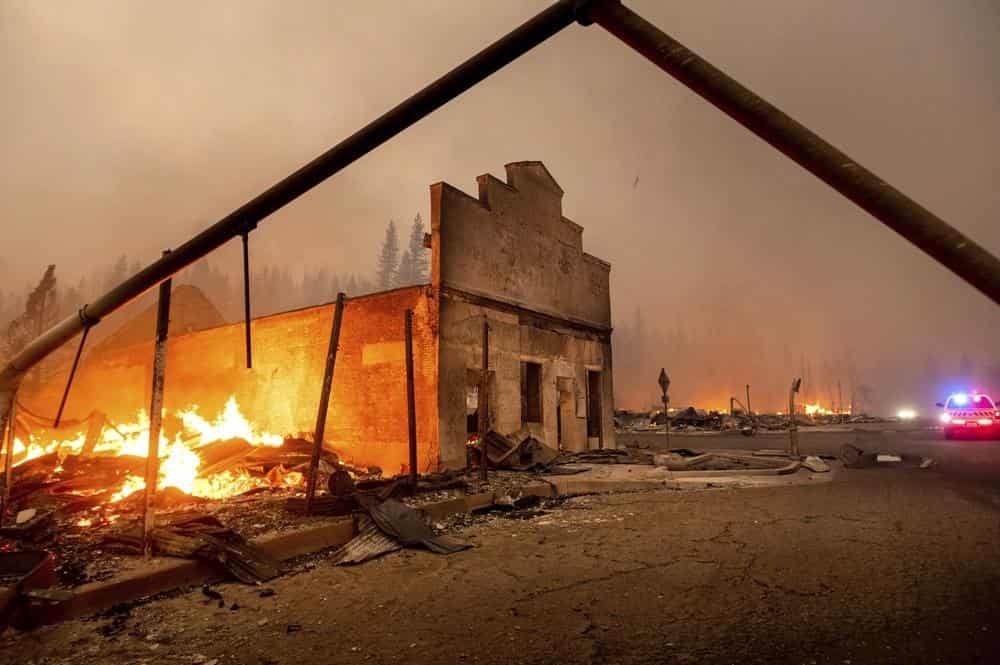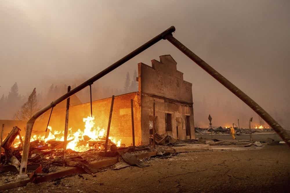 Un fotógrafo que cubría el incendio para The Associated Press dijo haber visto una gasolinera, un hotel y un bar quemados hasta los cimientos en la población de 800 personas.