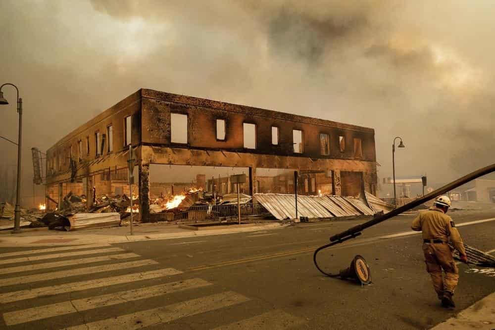 Los bomberos han intentado proteger la población, situada unos 450 kilómetros (280 millas) al nordeste de San Francisco, despejando escombros de las carreteras y señalando las zonas de riesgo.