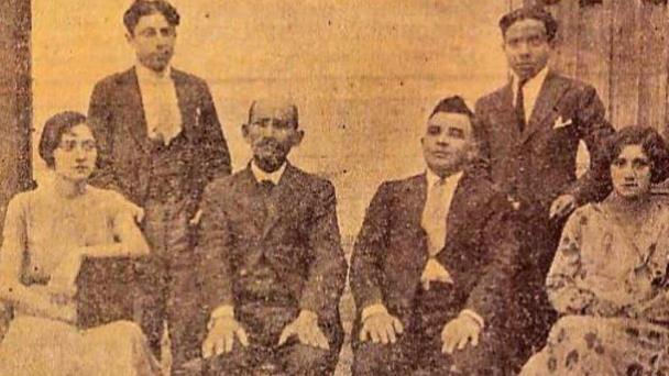 Personal docente de la Escuela “Hidalgo” durante la segunda parte de la década de los años 1920. De Izquierda a derecha de pie se encuentran Vicente García y Juan Granados; sentados se encuentran la Srita. Esther Maciel, Leonardo G. de la Cruz, Prof. Juan B. Serna y la Srita. Concepción Vera. Álbum Conmemorativo de 1927 en el AHR.