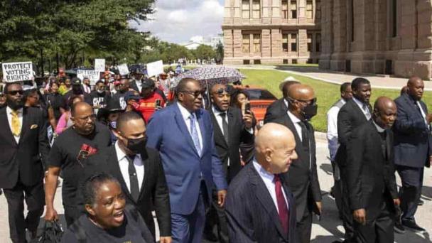 Los manifestantes marchan alrededor del Capitolio en Austin, durante una manifestación de oración contra los proyectos de ley republicanos.