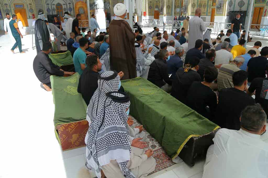 En la ciudad santa de Najaf, los muertos de Nasiriyah fueron enterrados. Las familias de luto se pararon junto a los ataúdes en una mezquita para decir una última oración.