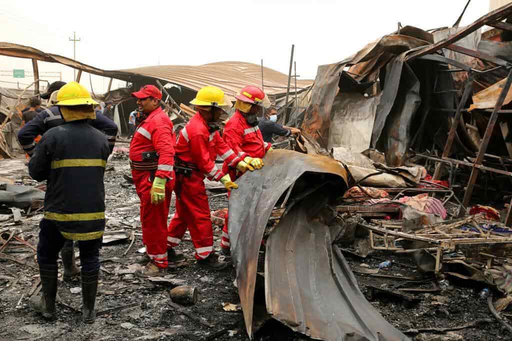 Ahmed Resan, que presenció el incendio, dijo que comenzó con humo. “Pero todos huyeron, los trabajadores e incluso la policía. Unos minutos después hubo una explosión ”, dijo. Dijo que los bomberos llegaron una hora después.