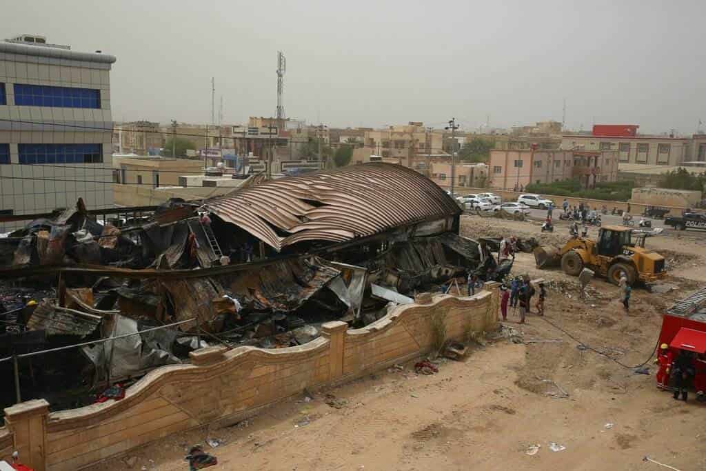La sala, inaugurada hace tres meses, contenía 70 camas en tres grandes pasillos. El mayor general Khalid Bohan, jefe de la defensa civil de Irak, dijo que el edificio fue construido con materiales baratos e inflamables.