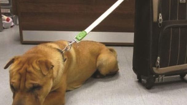 'Kai', un macho Shar-Pei de entre dos y tres años, apareció atado a un barandal junto a sus pertenencias en una estación de trenes