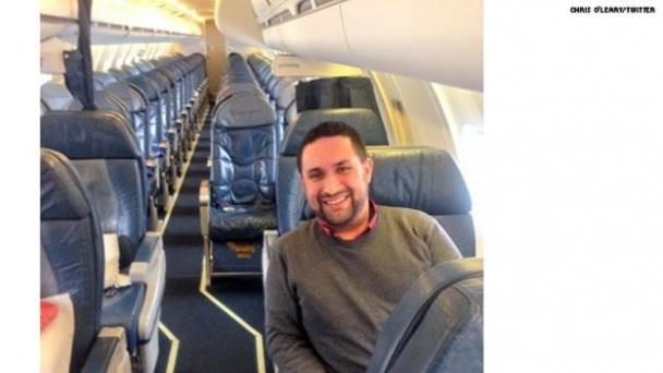 Chris O'Leary presumió en redes sociales su vuelo casi 'privado' rumbo a Nueva York después de un retraso del avión