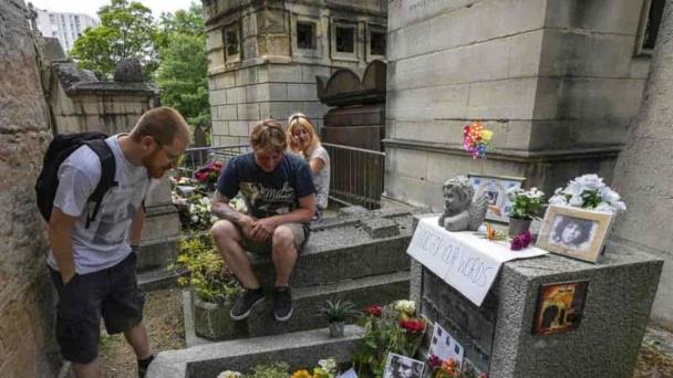 Cincuenta años después de la muerte de Jim Morrison a la edad de 27, amantes de la música de diversas partes de Francia y del resto del mundo acudieron al cementerio de Pere-Lachaise, en el este de París, donde el líder de The Doors está sepultado. Muchos trajeron velas y fotografías y algunos encendieron incienso cerca de la tumba, mientras la policía observaba cerca.