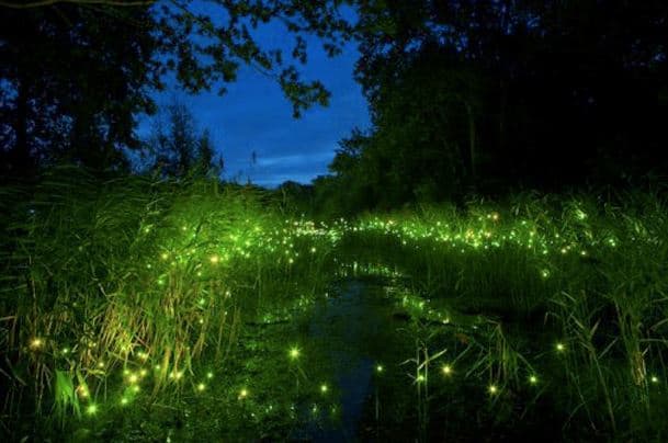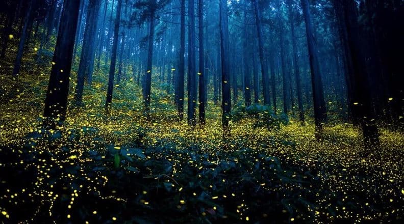 Antes de que el lugar quede en silencio y las luciérnagas hagan su ritual de cortejo, una intensa lluvia debe humedecer el suelo y rociar las ramas de los árboles.