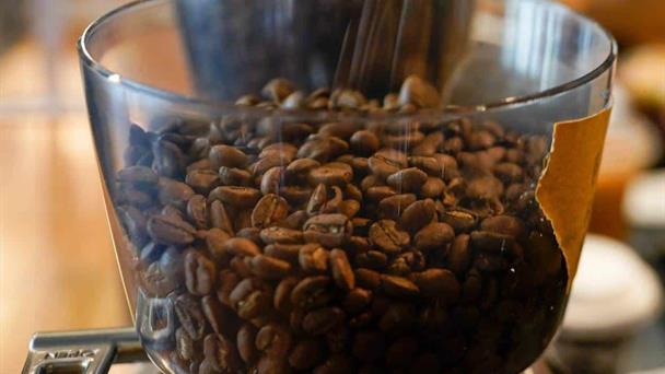 Granos de café en un molinillo en una cafetería en College Park, Maryland, el 1 de septiembre de 2021.