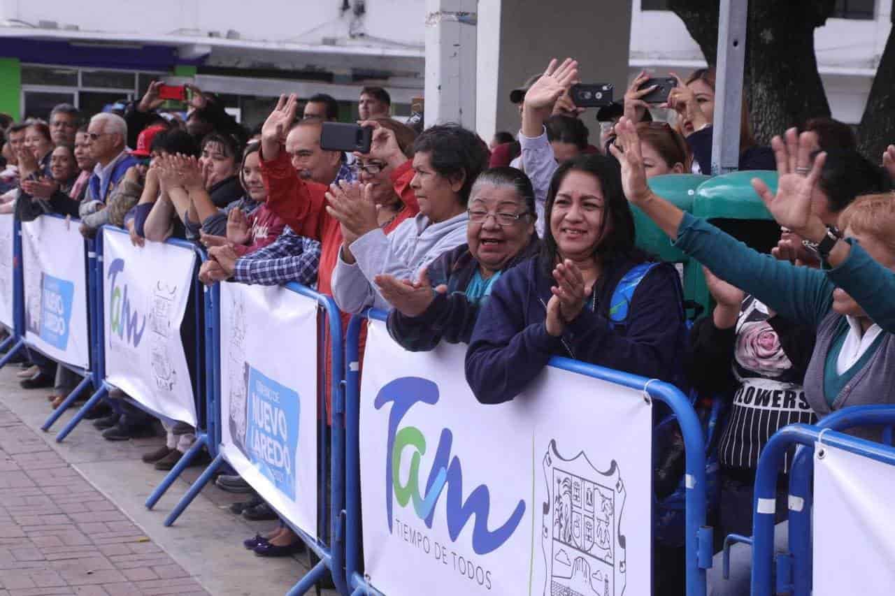 Este miércoles formaron parte del desfile más de 70 contingentes, tanto de las Fuerzas Armadas como de escuelas de todos los niveles, las cuales participaron con carros alegóricos y tablas rítmicas. “Miles de familias neolaredenses disfrutaron de la presentación de los contingentes”, destacó el mandatario estatal.