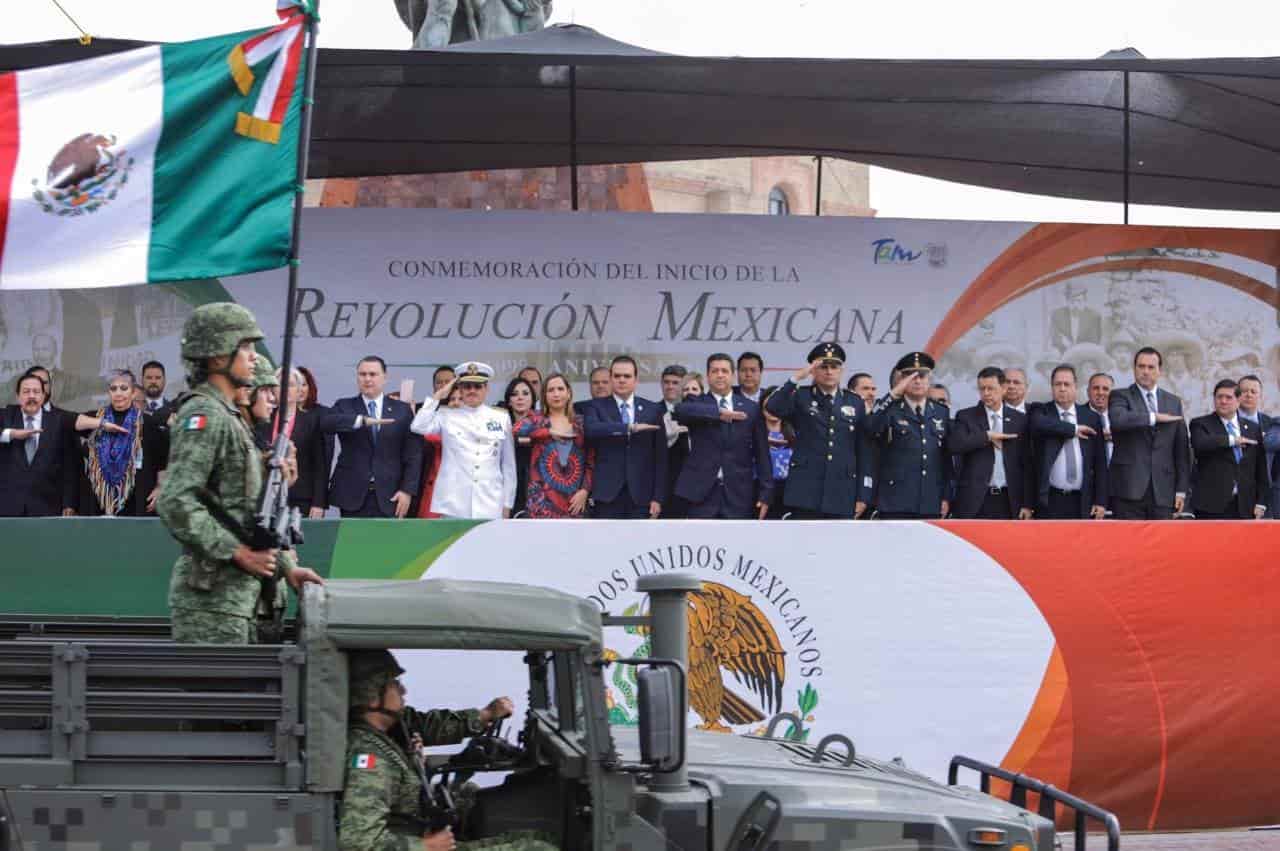 “Las familias de #NLD se dieron cita para disfrutar de la presentación de los contingentes en el Desfile Conmemorativo de la #RevoluciónMexicana”, ponderó el gobernador.
