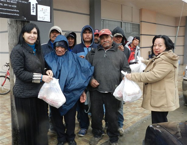 Encabezado por Noelia Cantú de Millán presidenta del Club, Elida Marín de Corte directora de aparatos ortopédicos y Luis Corte, una vez más el frío y las lluvias no fueron obstáculo para la entrega de los apoyos alimenticios.Conmovió sobremanera a la señora Noelia Cantú de Millán el caso del señor Julián Torres Esparza de 49 años de edad, residente de la colonia Benito Juárez con domicilio por la calle Alamo en la casa marcada con el número 718.