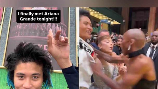 Ariana Grande junto con Cynthia Erivo y parte del casting de "Wicked: For Good" vivieron un momento de sorpresa y desconcierto cuando un joven saltó la seguridad y tocó por segundos a la actriz.